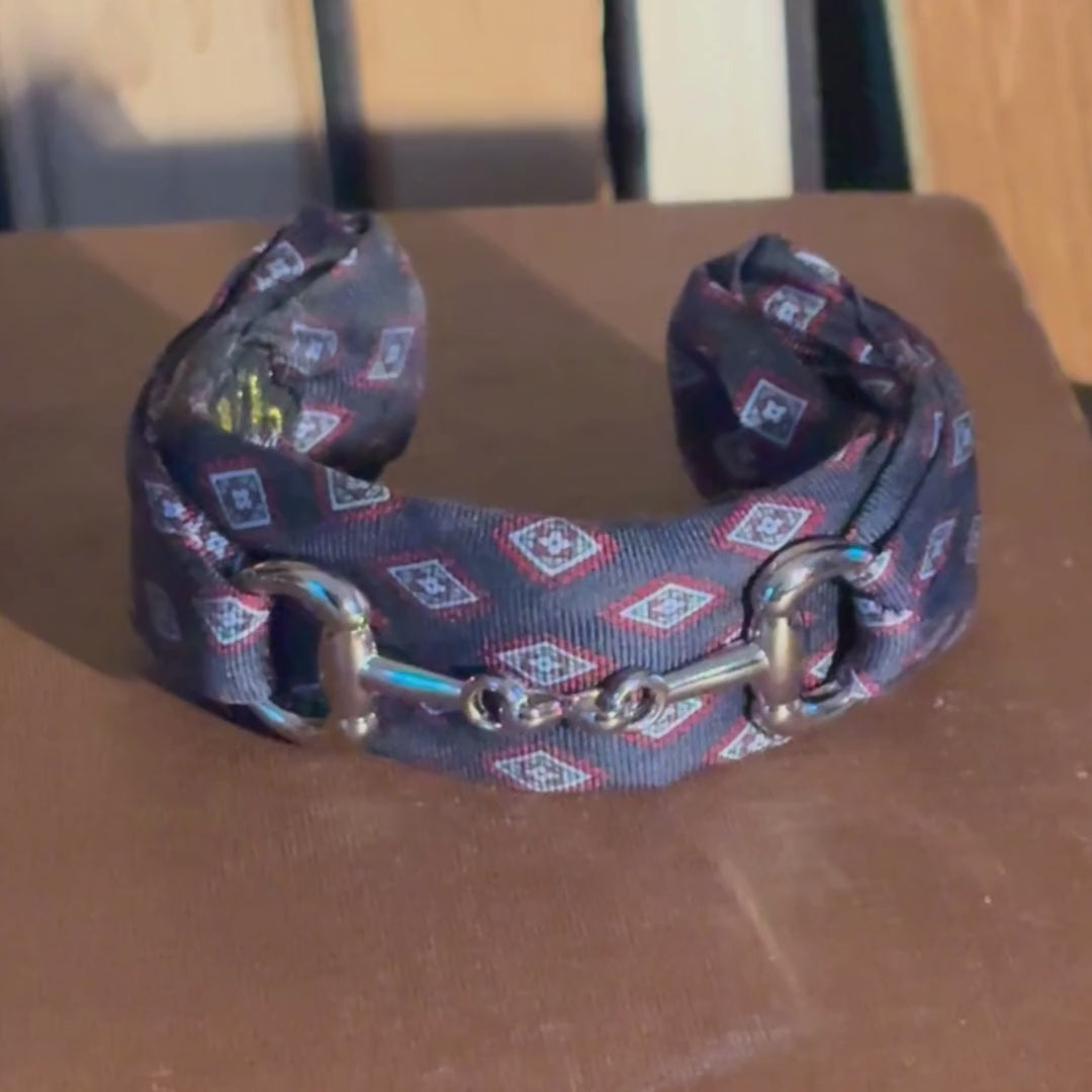 Discover refined elegance where discarded vintage materials are thoughtfully transformed into distinctive wristwear. This smart, elegant cuff was created from a well-worn cravat. A perfect example of how the past can be repurposed with style.